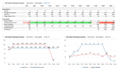 The Call Center Planning model example is an easy tool for staffing and planning at call centers.