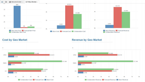 Review cost and revenue contributions of items in different planning segments by market regions.